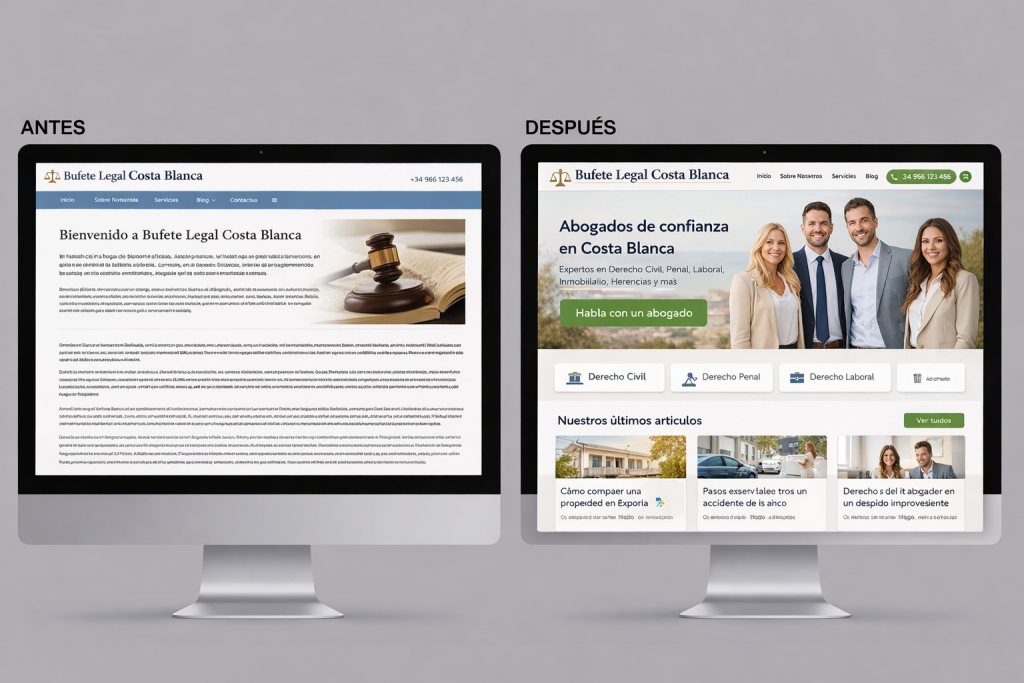 ANTES: Web densa, menú confuso, imágenes pesadas.